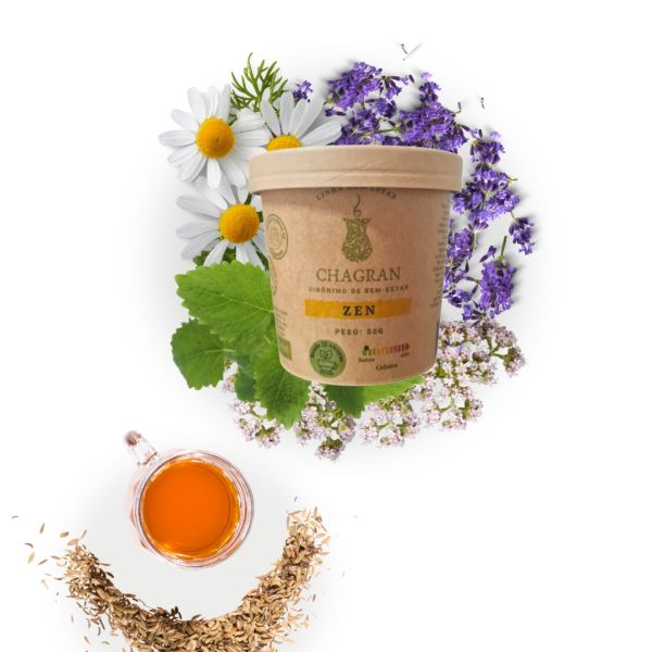 - Descrição: Chá Zen é uma mistura relaxante de camomila, alfazema, melissa, valeriana e erva- doce. Essa combinação única de ingredientes cria uma experiência tranquilizante com uma