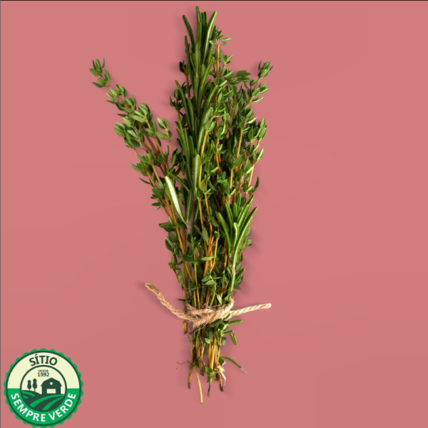 O tomilho é uma erva aromática amplamente utilizada na culinária, destacando-se pelo seu sabor intenso e fragrância única. Além de ser um ingrediente versátil em pratos salgados, como carnes, sopas e molhos, o tomilho também é valorizado na medicina tradicional por suas propriedades antimicrobianas, anti-inflamatórias e antioxidantes. É conhecido por auxiliar na melhora da digestão, aliviar problemas respiratórios e fortalecer o sistema imunológico, sendo uma excelente opção tanto para a alimentação quanto para tratamentos naturais.